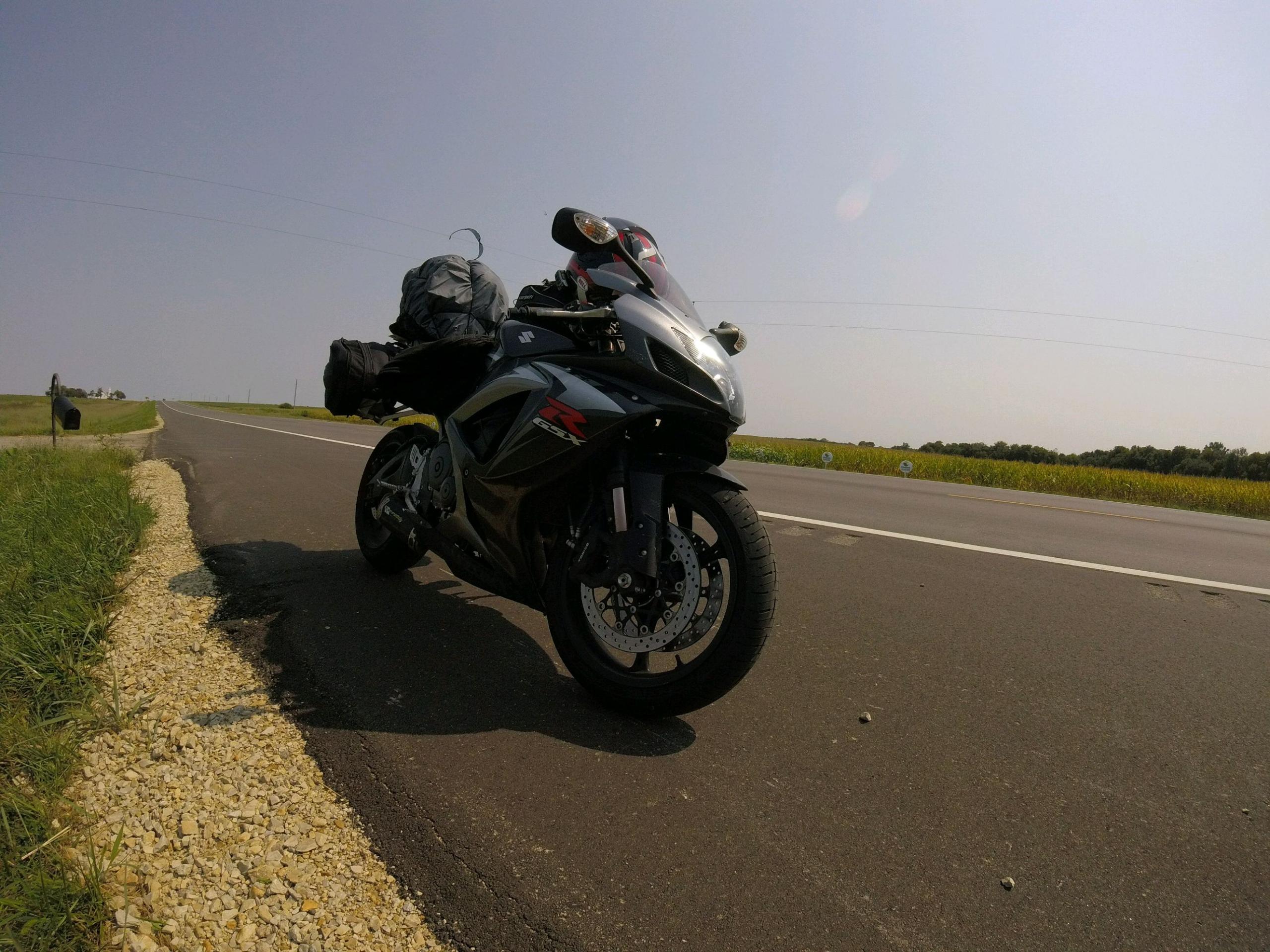 By this time of day, it was in the high 80’s, so we decided to stop for water in Clay. It was really awesome actually. We pulled off to the shoulder of the road and hung out drinking or water from our Nalgene bottles. Luckily, Gabe was able to pack a cooler on his bike so we can keep cold drinks. We were parked for a short while hydrating and taking pictures of the bikes. It really felt as if we were in the middle of nowhere. It was peaceful.