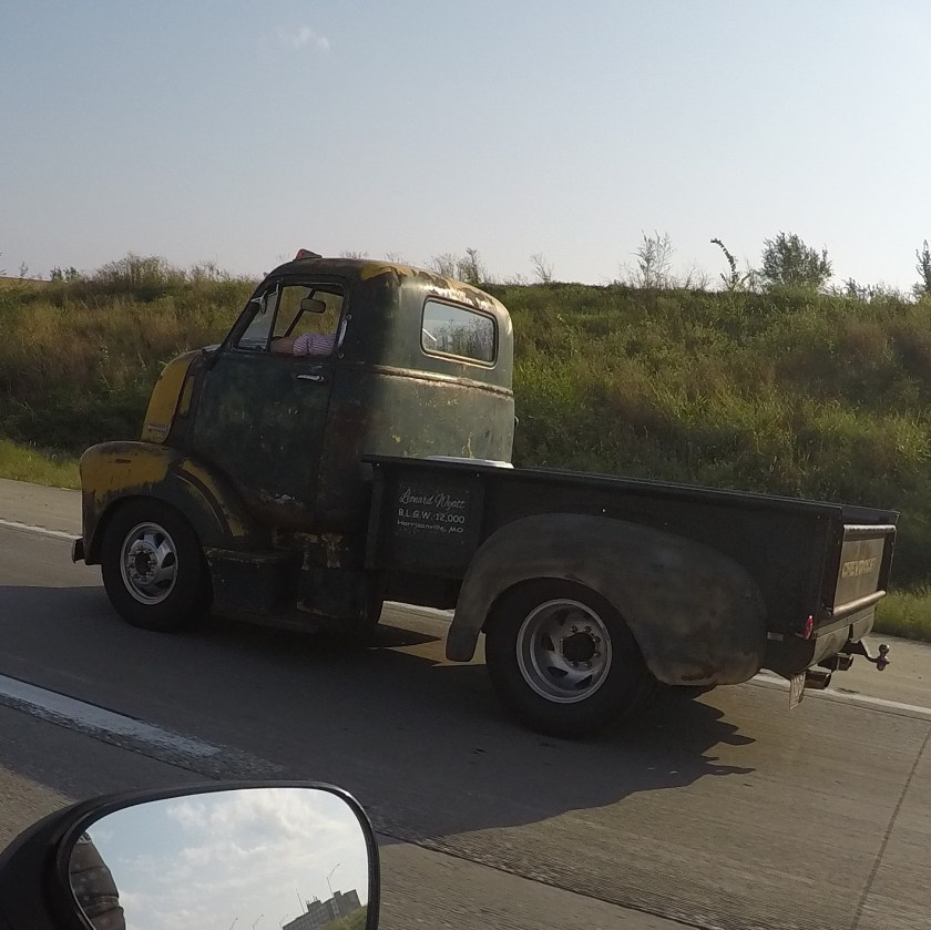 We left Clinton and headed north west up route 13 then to route 7. We hopped onto I-49 north making our way towards Kansas City. As we got closer to the city limits, I darted through some cars to get a picture of the Kansas sign. I even saw a pretty cool looking truck. It was older and a little rustic looking, just pretty cool.