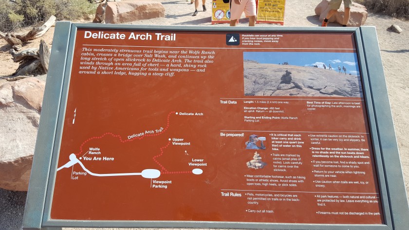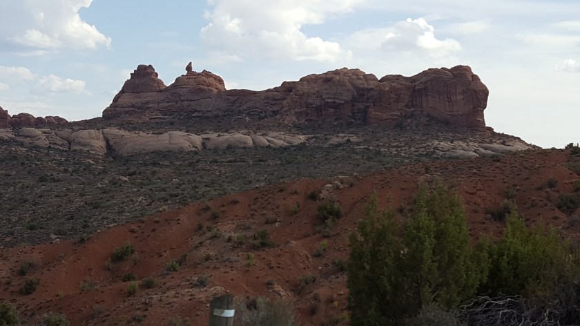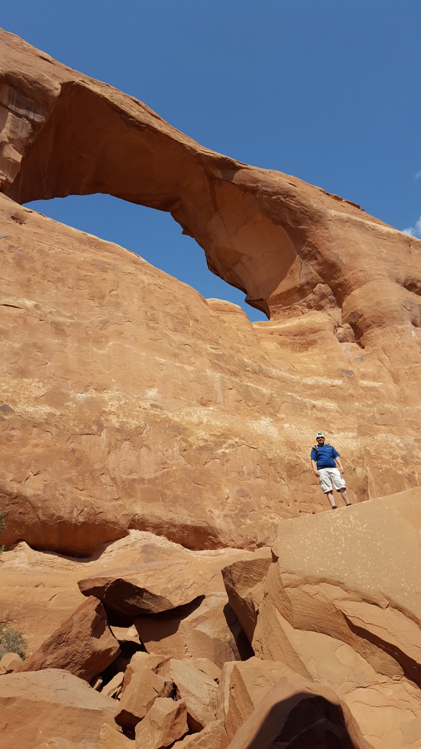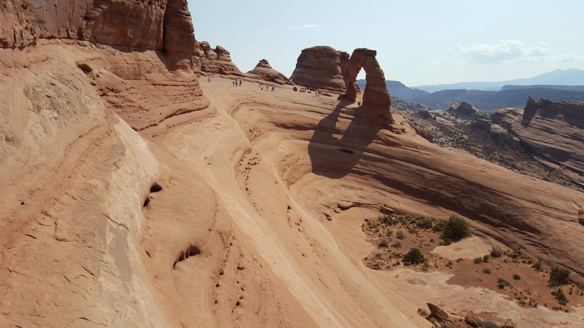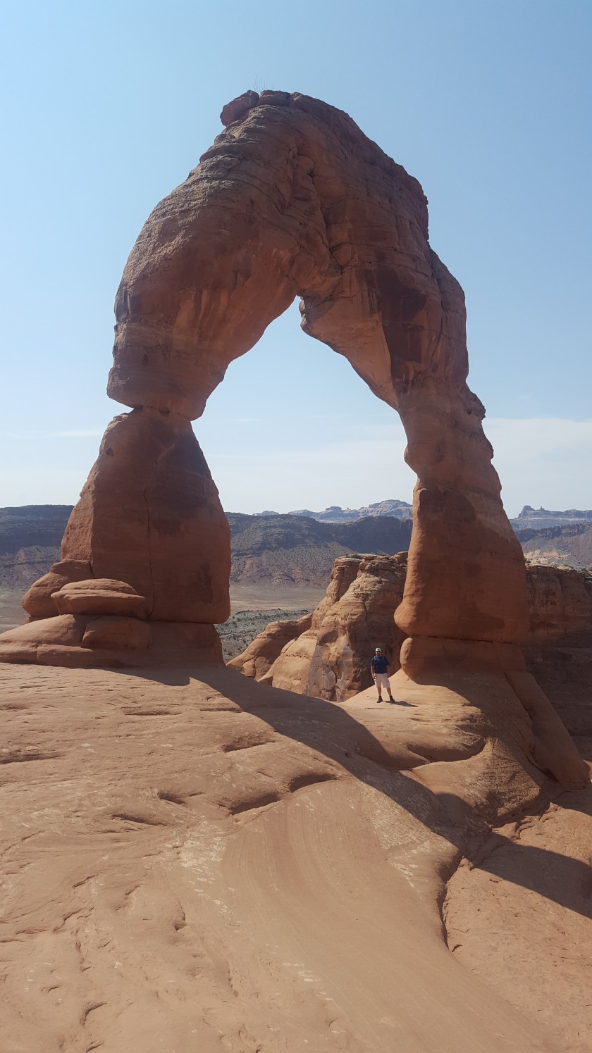 We were headed to Delicate Arch. Delicate Arch is one of the main attractions. It is a nice three mile hike round trip. We made sure to go there first before it got too hot. Before we got to the main arch, we came to a much smaller one and were amazed at first. So we walked up to it, and from there you could see Delicate Arch. It was fascinating!