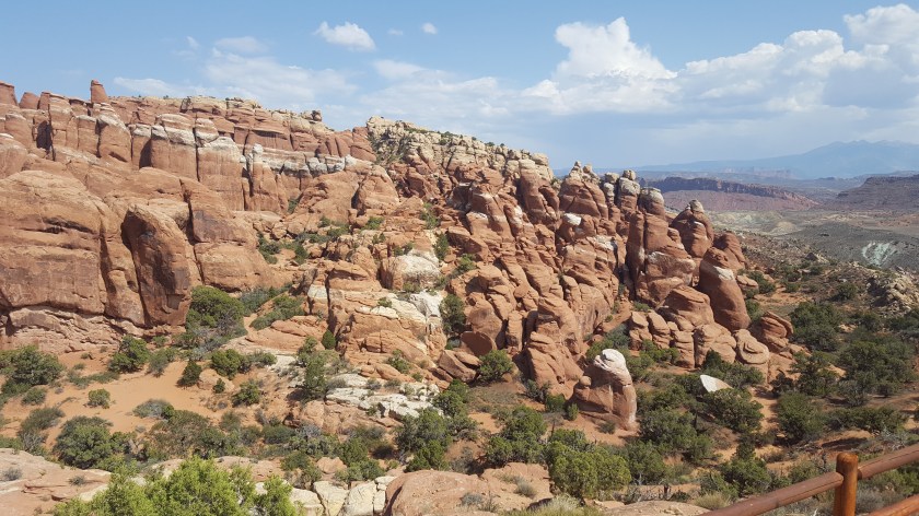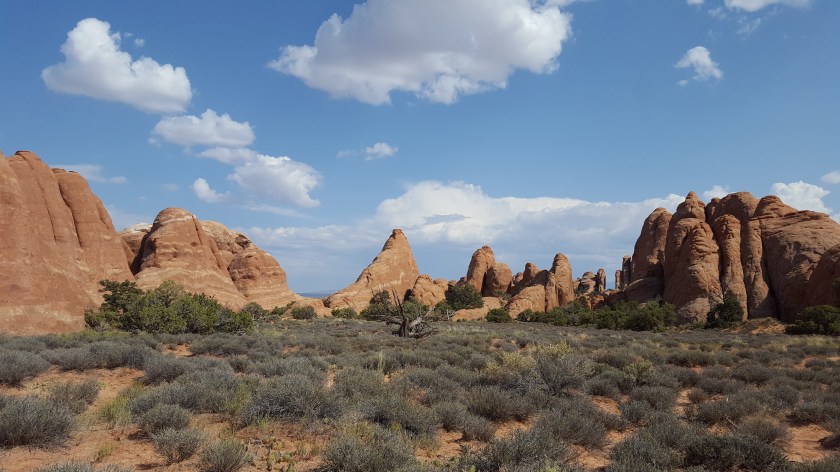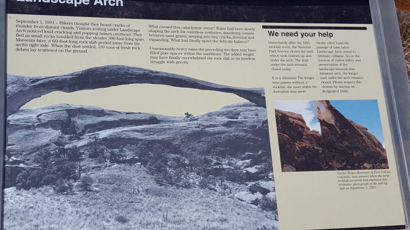From Delicate Arch, we hiked back and went to another arch called Landscape Arch. This arch, too, was incredible. This arch is very thin in comparison and over 300 feet wide. In 1991 a giant piece of rock broke and fell, making the right side even thinner.