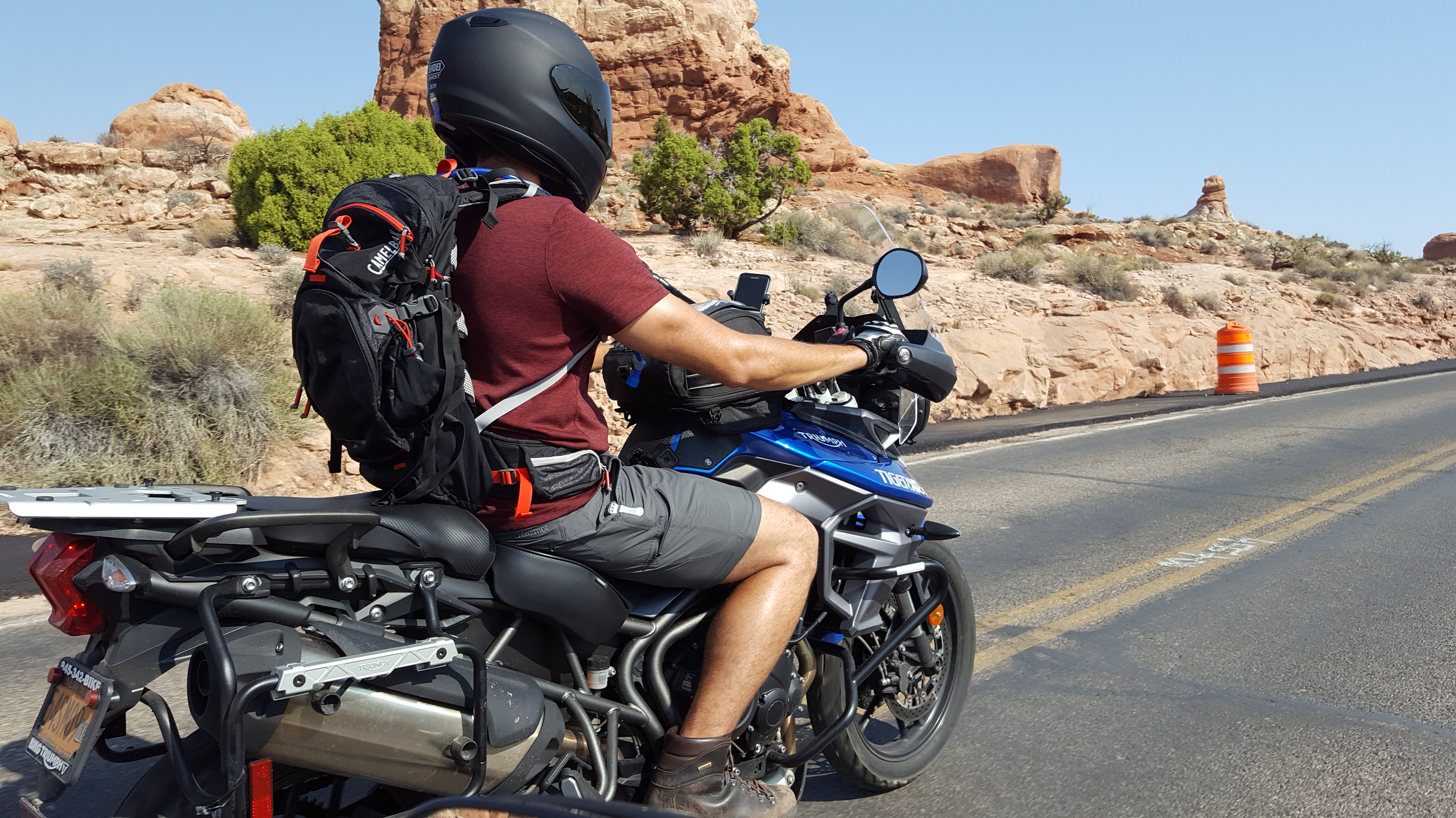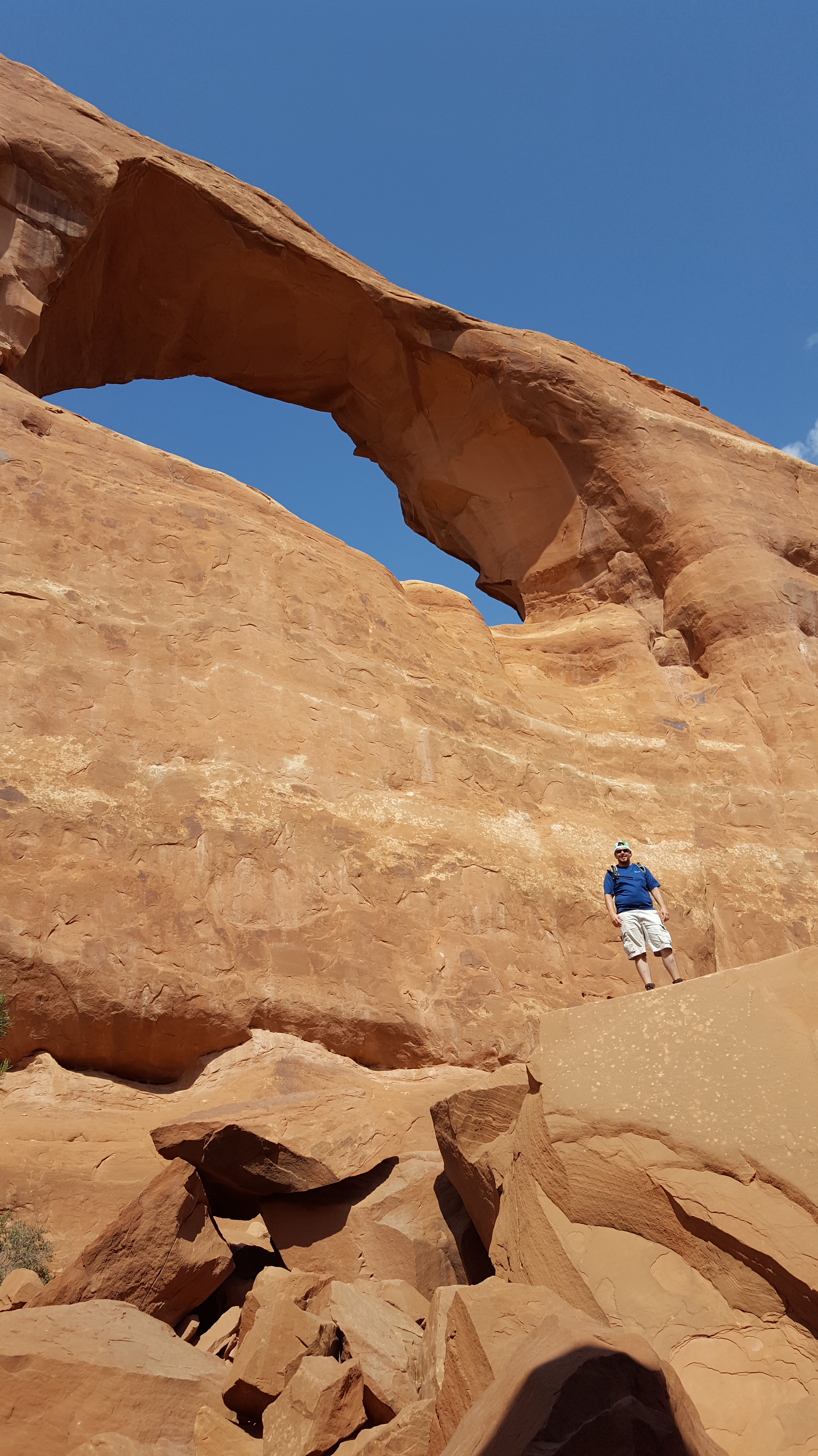 There were more arches that we saw while riding by, but we stopped at Skyline Arch since it was a very short hike and we were hungry. It looked so small from the road, but when we got right up to it, it was massive. This one was cool too. There were giant boulders below the arch from when the boulders fell out, forming the arch.