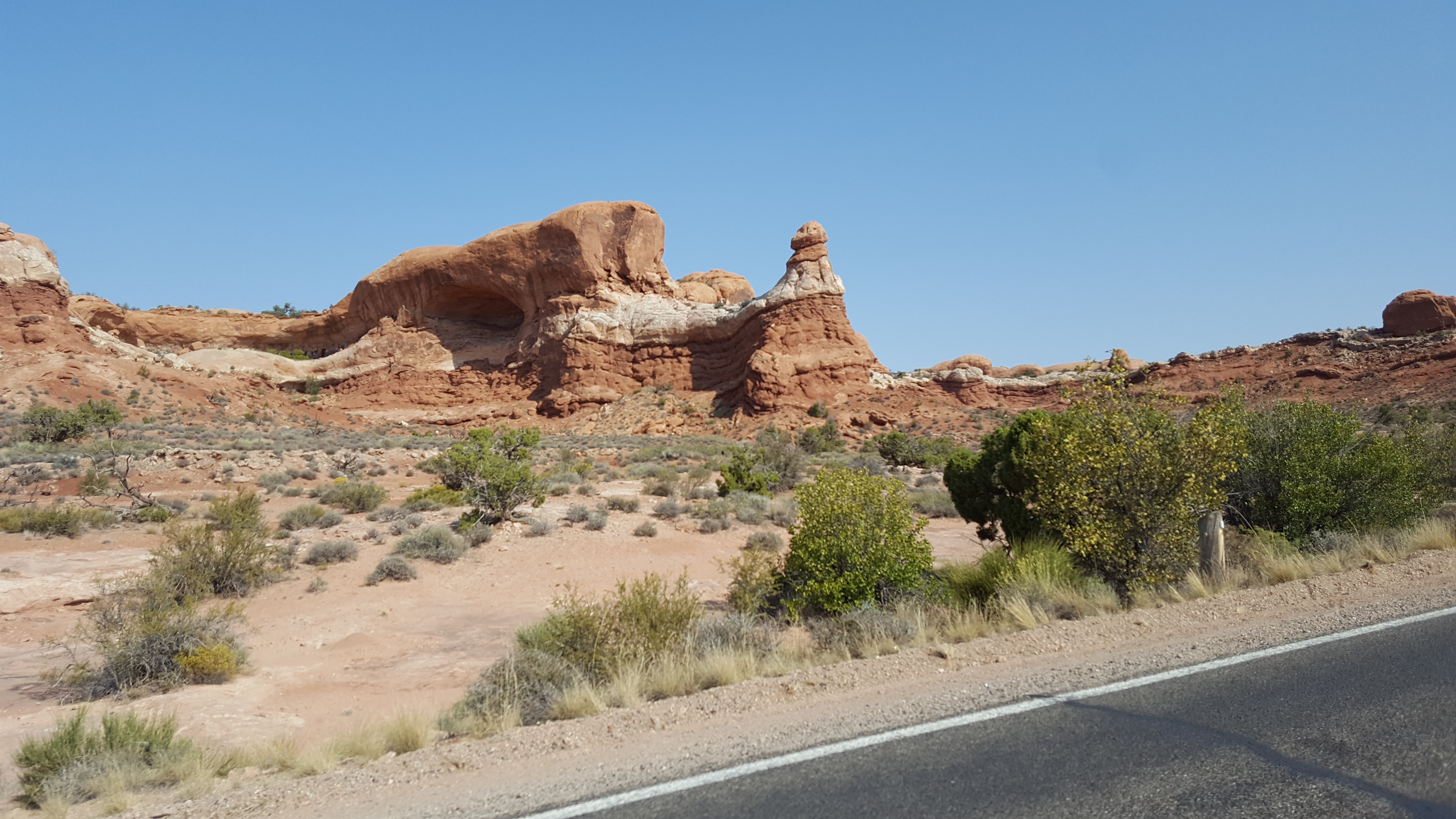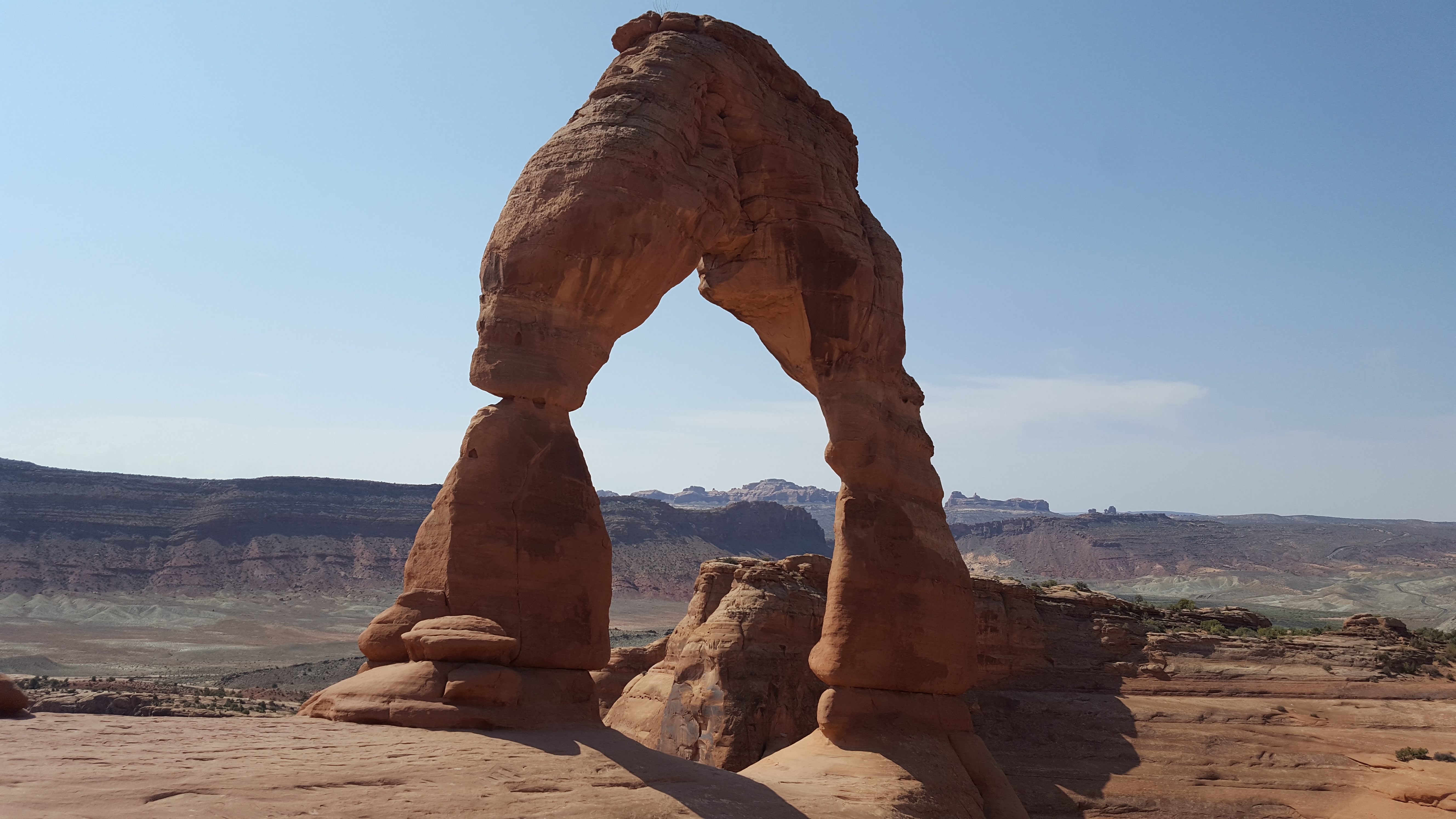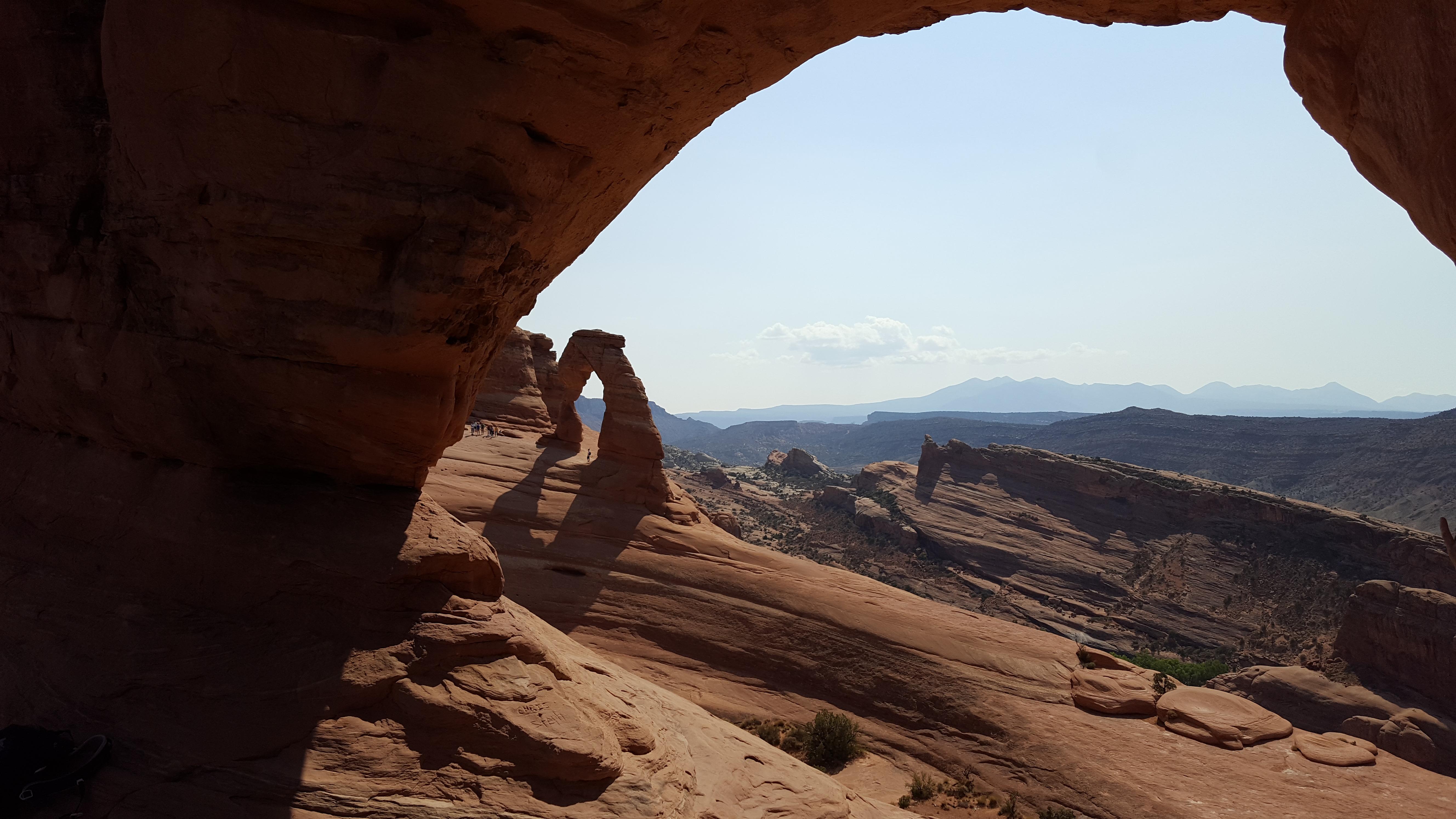 We were headed to Delicate Arch. Delicate Arch is one of the main attractions. It is a nice three mile hike round trip. We made sure to go there first before it got too hot. Before we got to the main arch, we came to a much smaller one and were amazed at first. So we walked up to it, and from there you could see Delicate Arch. It was fascinating!