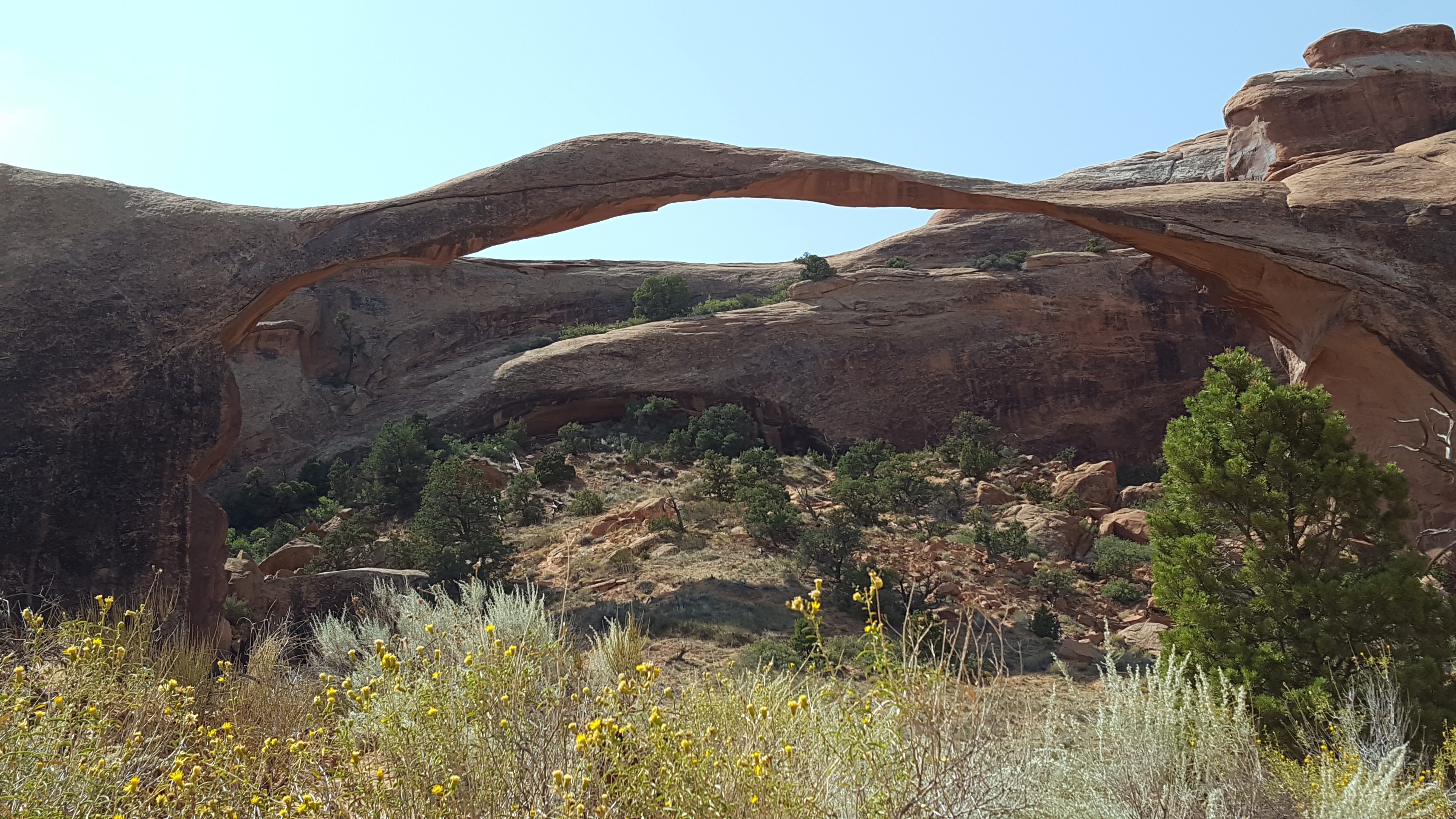 From Delicate Arch, we hiked back and went to another arch called Landscape Arch. This arch, too, was incredible. This arch is very thin in comparison and over 300 feet wide. In 1991 a giant piece of rock broke and fell, making the right side even thinner.