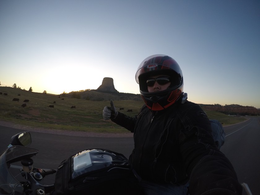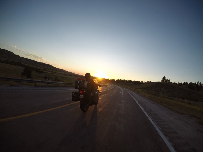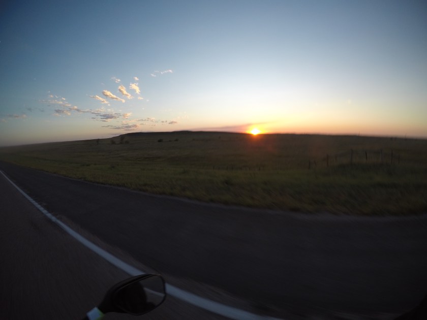Once we were done climbing the boulders, we headed down and hopped on the bikes. We were eager to make it to Gillette, Wyoming before calling it a day. Luckily, on the way, we got to stop and experience an amazing sunset! From the we continued until we hit the interstate. It was a good ride along the interstate. We chose the interstate to make up for some lost time. The only downside was hitting what seemed to be every gnat that exists! But, we arrived in Gillette around 8:30PM. Can you guess where we stayed?! At another Super 8 motel hahaha.