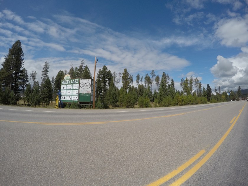 On our way, we rode through a lake-like region filled with lots of beautiful evergreens that had a reddish bark. It so happens to be Flathead National Forest – it was so pretty. We passed several lakes, including Seeley Lake where Gabe’s wife’s family owns a piece of property. We didn’t stop, just continued to Kalispell.