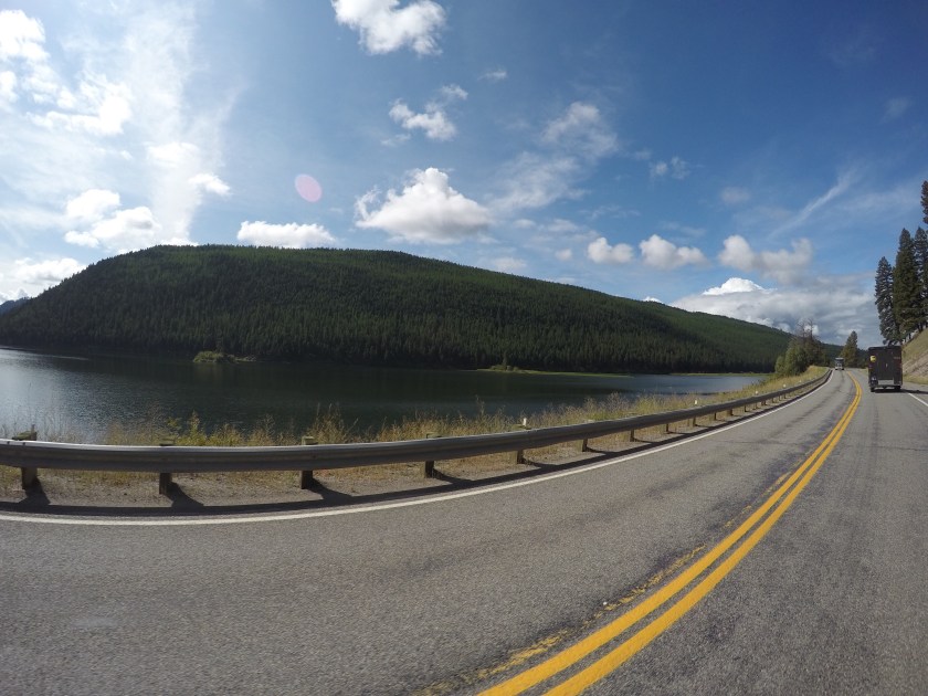 It was a beautiful cold day from Helena towards Kalispell where there’s yet again, another Super 8! Haha. Kalispell is a decent town on the western side of Glacier National Park. Shortly after leaving Helena, we headed up some mountains and the temperature dropped about 4-5°. Gabe and I were discussing stopping before going up the mountain to put some heavier gloves on and rain pants to acts as a wind barrier. Good thing we did! It went from 53° to 49° real fast! Christian was smart enough to be prepared so he was fine! On a motorcycle, as long as it’s not freezing, just blocking the wind keeps you warm.
