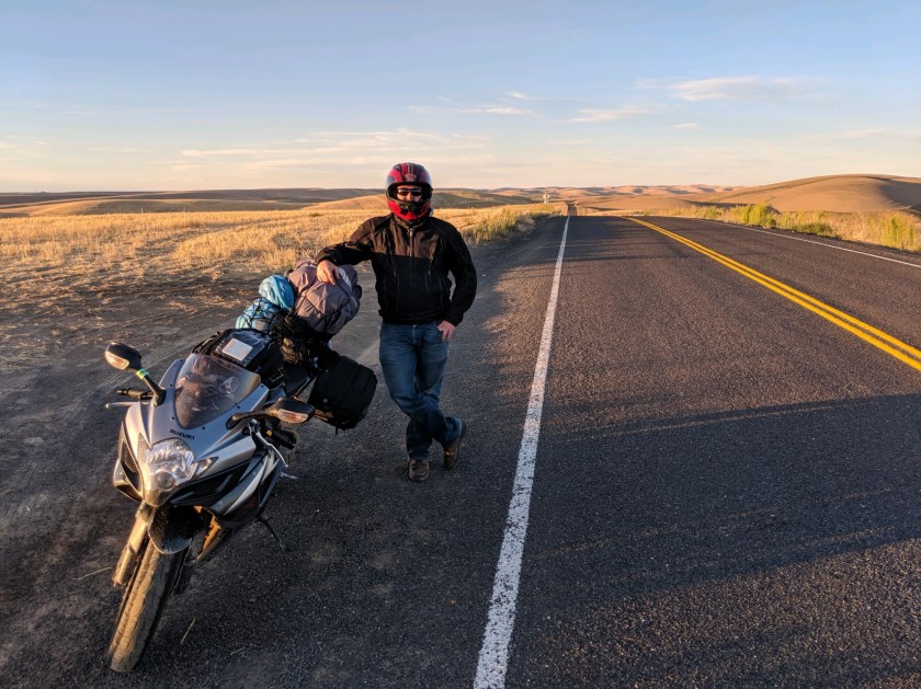 We continued on and rode through some really small towns and just appreciated the scenery. The sun was starting to set and we rode to the top of a hill where you could see nothing but wheat fields. So, we stopped and took a bunch of photos. It was just beautiful! We were in awe that there is so much undeveloped land. It was really nice to take it all in!From there, we finished the last leg until we reached our Super 8 in Kennewick, Washington. We saw so much. It was great to see the geography slowly change from the green Rocky Mountains into the golden wheat fields. Personally, that’s one of the best reasons for traveling America via land. It truly is amazing!