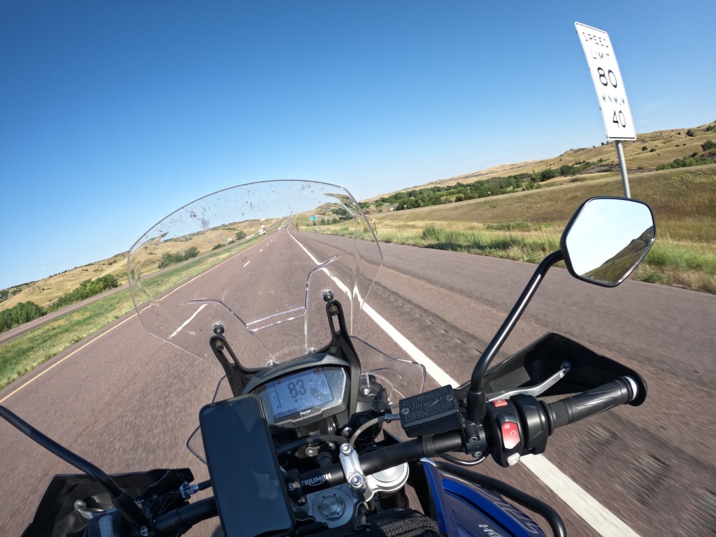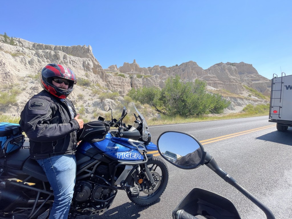 We headed towards the park and we were starving so we stopped at Wagon Wheel which is little local restaurant in the Badlands. We ate there then started from the beginning of the park and rode through it taking photos and videos along the way. Once we were done riding through the park, we were on our way towards the Black Hills. Google Maps suggested us to take a dirt road to get back to I-90, but it was a dirt road. This dirt road had the rumble-strip type of bumps in it so we immediately turned around. It was super bumpy and we did not want to take a chance with any of our gear vibrating loose while riding down this 6 mile dirt road. As I turned around, my front end started to wash out and I tried to correct it but between the soft sand and my traction control, I almost went down. Thank good I didn’t! Even though nothing happened, my heart was racing for a little while. I really thought that I was going down. Eddie said it was sort of funny to see in the rear view mirror haha. But, since nothing happened, we continued through the park until we reached the western exit and made out way towards Rapid City.