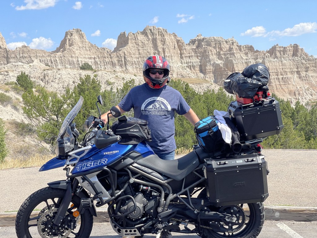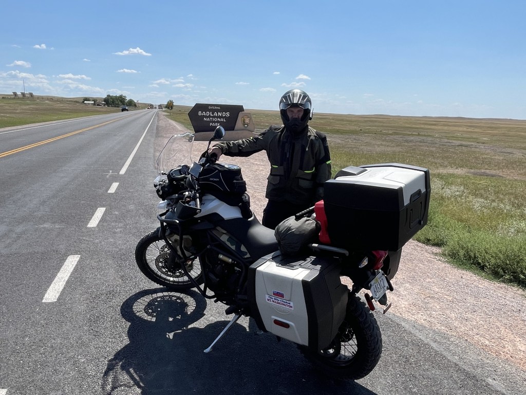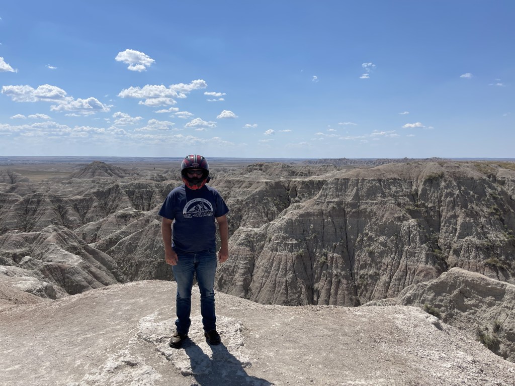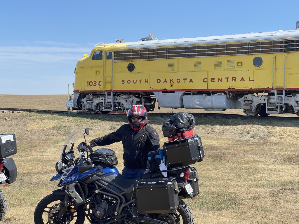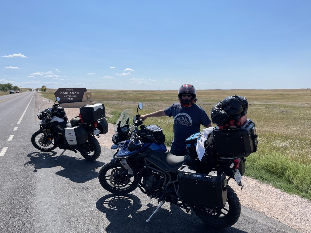 We started the day in Sioux Falls, SD and rode about 520 miles. We cruised down I-90W some more until we reached the Badlands National Park. The best part about sections of I-90 is that the posted speed limit is 80mph, so we were able to make some ground. There’s also a lot less people on the roads in comparison to home in the northeast. A few exits before the park, we got off for gas. It’s the exit for 1880 Town, which I believe is a small historical exhibit. I remembered last time I took this route in 2019, there was a camel laying in the field and I was able to tell Eddie. The camel was there again, but unfortunately I was not able to get a picture of it. There was a train there so we opted to get some photos with the train in the background.