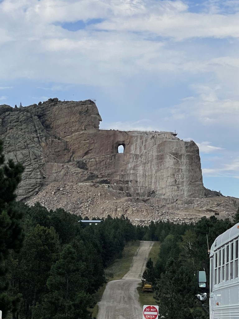 Once we arrived in the suburbs of Rapid City, we were looking up at the sky. We could see storms in the distance and were watching the radar and local weather. We stopped for a drink and waited for the storm to pass. It was perfect timing! As we left, the storm passed though the Black Hills National Forest. The roads were wet in spots, but we were dry and we didn’t have to suit up for the rain. It was about 95 degrees until we reached The Black Hills, then the temperature dropped to about 60 degrees. Since we were on limited time, we first stopped at Crazy Horse, rode up Iron Mountain Road (16A North), and then stopped at Mount Rushmore before ending the day in Sturgis. We arrived at Crazy Horse and paid to get in, but we couldn’t get anywhere close because of the recent lightening, so we left and headed to Iron Mountain Road. There are tours up to the top of Crazy Horse, but the tours last over an hour and we wouldn’t have had the time. One day I will be back and explore it!