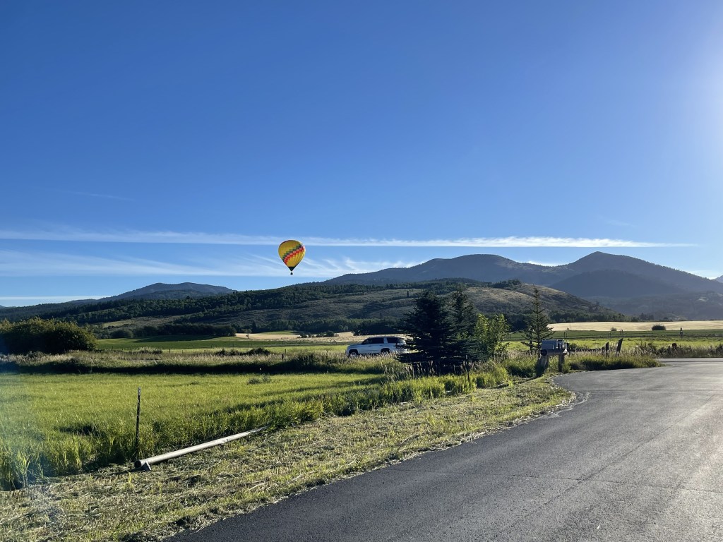 We got up, packed our tents, and went to get breakfast. As we were leaving, we saw a hot air balloon coming down and we stopped to get pictures quick. We had breakfast at The Provision Kitchen in town which was really good. From there we headed up to Grand Targhee Resort to take a look around. The ride up was nice and there were some fun turns which always makes the ride more enjoyable.