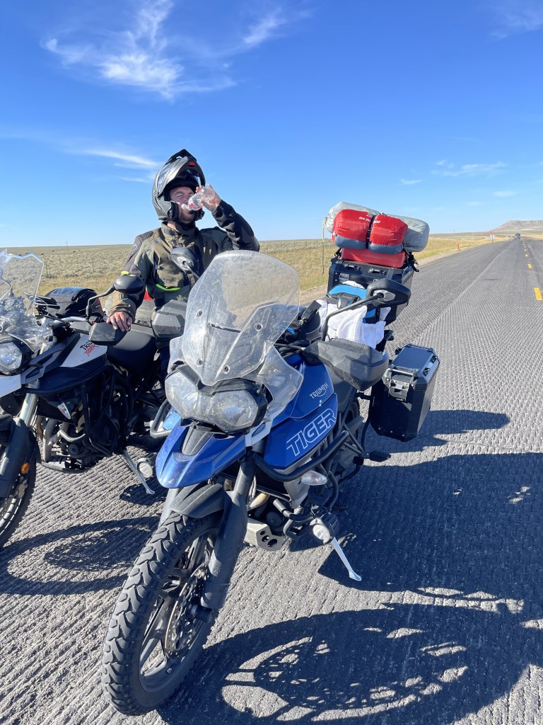 We finally arrived in Rawlins, WY. From there we were trying to find a place to end up for the night. We thought Walden, CO would be a good point since we were planning on making it to Granby, CO before making our way into Rocky Mountain National Park. On the way, the sun started to set. The temperature started to drop so we pulled over and added some layers. At this point, it was dark and when we got back on the road for the last hour, it was a bit tense. There were a lot of hares and antelope on the shoulder of the road and I did not want to hit either of them at 8:30pm in the middle of nowhere. After taking our time, we crossed into Colorado and made it to North Park Inn & Suites. When we checked in, we were given a room. Well, we got to the room, and when we opened the door, there were construction workers laying down. They were quite surprised! haha Their system never updated properly. Luckily there was a master suite we were able to stay in. We finished the day with about 460 miles.