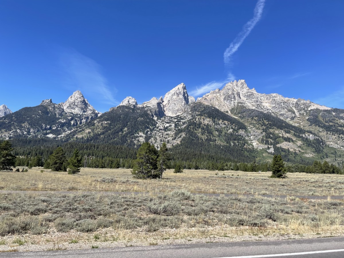 From the resort, we headed to Jackson, WY (Jackson Hole) but just rode through town. It was very busy and touristy so we continued into Grand Teton National Park. We stopped at the visitor center to see if they had any stickers for our panniers. Then, we took the scenic route through the park and along Jenny Lake. We were hoping to see a bull moose, but we never saw one. We also just rode through the park without stopping to hike. I’m sure if we were to hike, we could have, but who knows? The view of the Tetons is amazing anyway, but that would have been the icing on the cake!