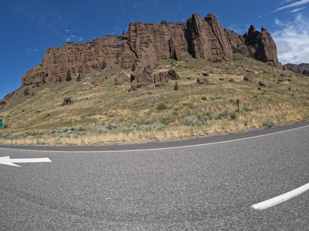 It was a crumby morning. We started late because the weather radar was showing rain ending about 11am.  The first hour or so it was raining as we left Cody on our way to Yellowstone National Park. By the time we got to through Shoshone National Forest, it was clear and sunny so we took our rain gear off. Luckily for us, it turned out to be a beautiful day!