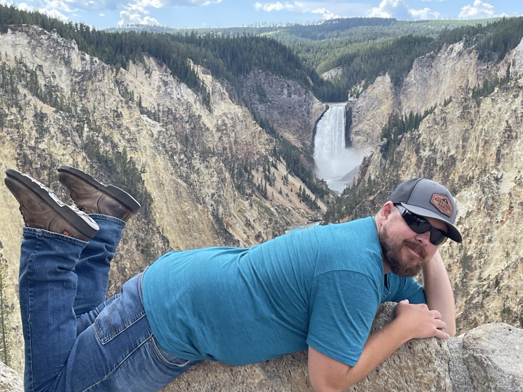 Cody is about 50 miles east of the eastern entrance to Yellowstone National Park. We got to the park and shortly after we saw a bison laying in a field which is always cool to see. We continued along the massive Yellowstone Lake and through the park. We stopped at Fishing Bridge General Store where I knew they had a cafeteria, because I was hungry! haha. We ate quick and tried to make our day at the park efficient. It helped that I was there before and knew what we should check out.