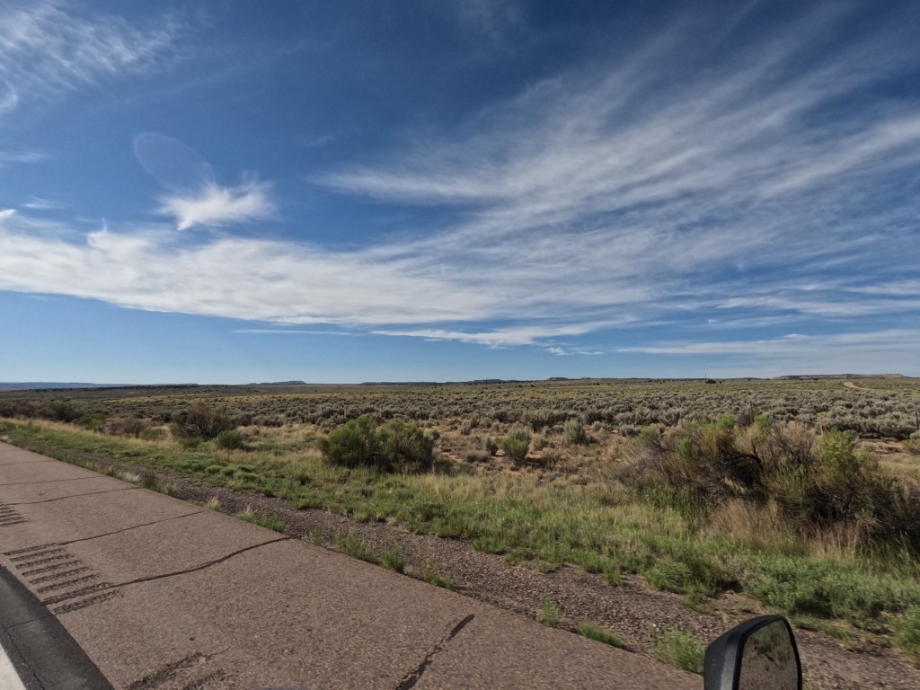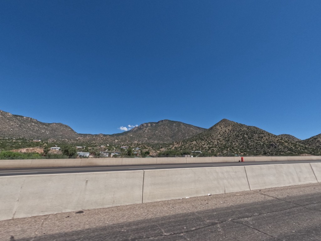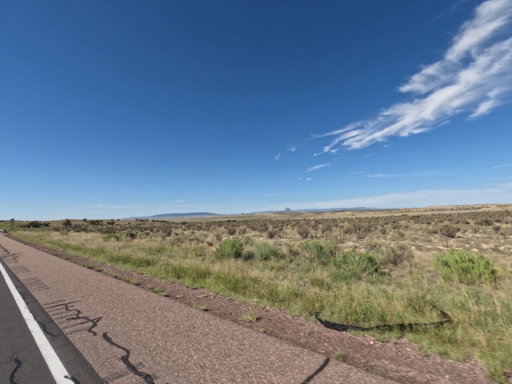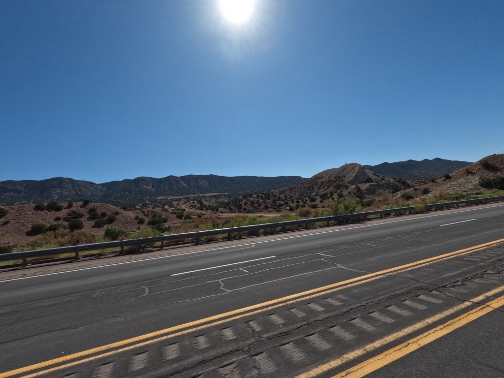We left from Farmington, New Mexico and headed towards Amarillo, Texas to stop at “The Big Texan Steak Ranch” steakhouse. I happened to come across it using Google Maps to see if there was anything to see in Amarillo and wanted to try it out. We took route 550S towards Santa Fe, NM. Along the way there were some rock formations I didn’t expect to see, but enjoyable. I had a feeling it wouldn’t last long, but I was wrong. Route 550 heads towards the Santa Fe National Forest so there was more mountainous views.