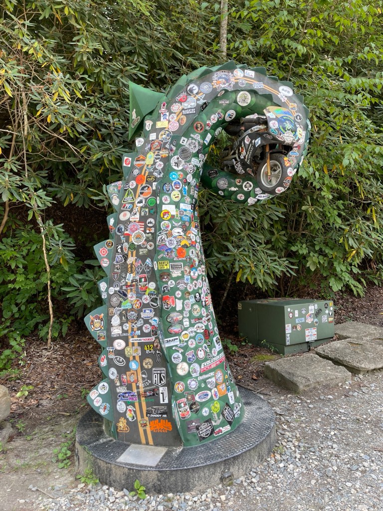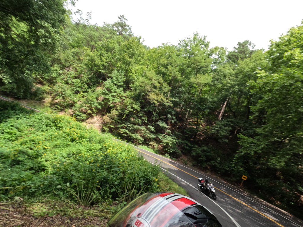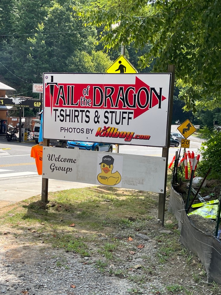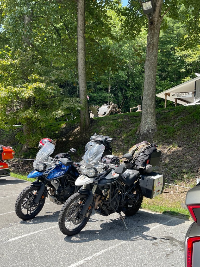 We left Pigeon Forge and back to the Tail of the Dragon. We never stopped the day before at the gift shop they had and we wanted stickers and a T-shirt. I believe we were in in Four Corners Monument when we saw someone wearing a cool shirt with the logo for Tail of the Dragon. So, we went back through. This time it was a slow ride. Since there was a a Jeep Invasion event in the area, there were a bunch of Jeeps going slow down the road. At one point we came around a corner and going the other direction was someone on the Harley-Davison’s Pan American adventure bike. He was laying it down! We didn’t realize until later, but when we checked the photographers websites to see our photos, we saw he had a pit bull on the back of his bike. It was actually quite impressive! I ended up searching him and following him on Instagram, haha.