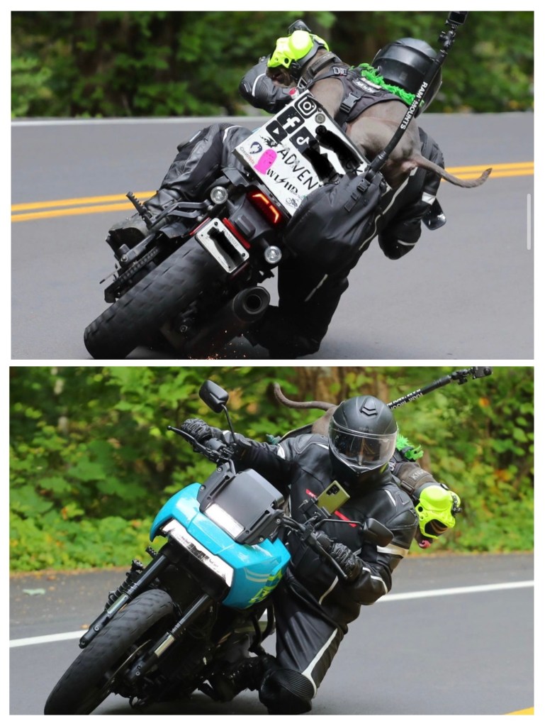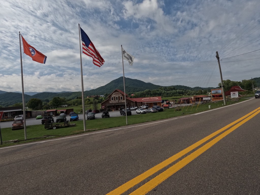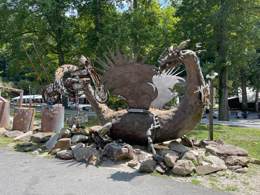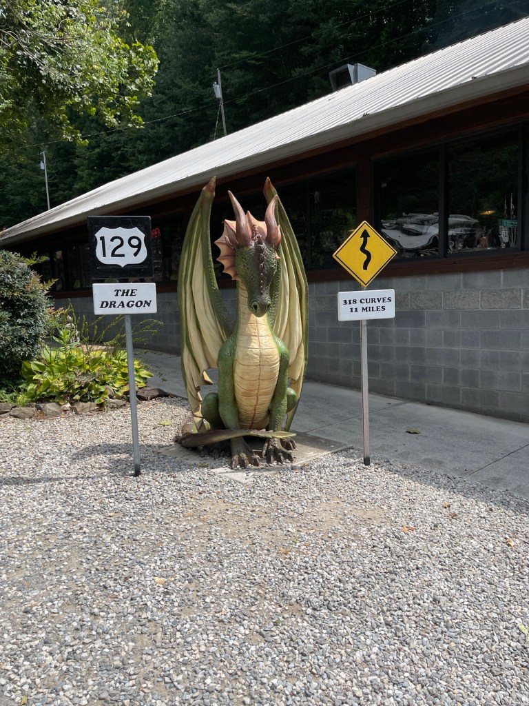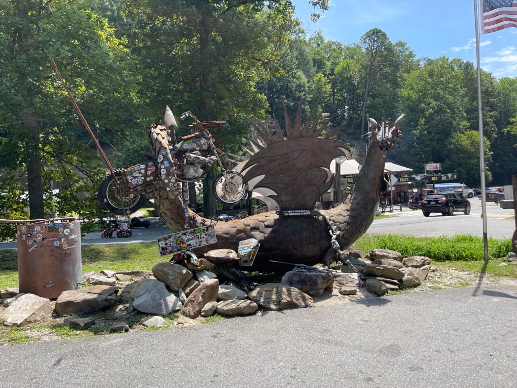 We left Pigeon Forge and back to the Tail of the Dragon. We never stopped the day before at the gift shop they had and we wanted stickers and a T-shirt. I believe we were in in Four Corners Monument when we saw someone wearing a cool shirt with the logo for Tail of the Dragon. So, we went back through. This time it was a slow ride. Since there was a a Jeep Invasion event in the area, there were a bunch of Jeeps going slow down the road. At one point we came around a corner and going the other direction was someone on the Harley-Davison’s Pan American adventure bike. He was laying it down! We didn’t realize until later, but when we checked the photographers websites to see our photos, we saw he had a pit bull on the back of his bike. It was actually quite impressive! I ended up searching him and following him on Instagram, haha.