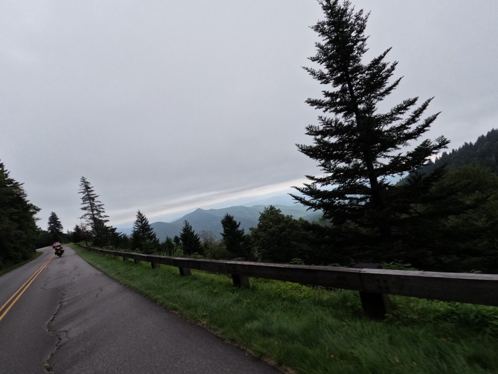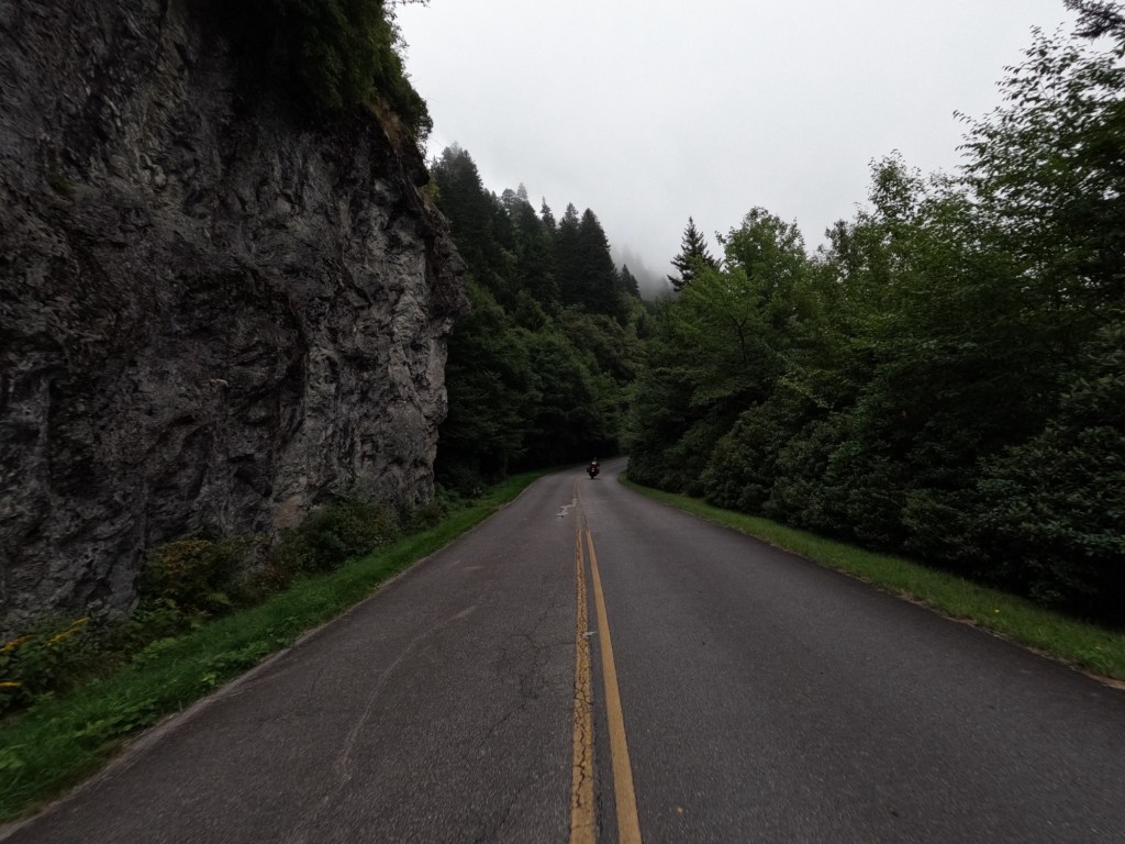 After stopping to get stickers and shirts, we headed back to Cherokee, NC where the the parkway begins. Shortly after starting at mile marker 469, I wanted to stop at some of the pull-offs for some photos, but Eddie told me there are hundreds of pull-offs, so we just rode down the parkway and I would pull out the GoPro to take photos. The views truly were amazing. I would highly suggest taking a ride on the parkway if you’re ever near Great Smoky Mountain National Park.