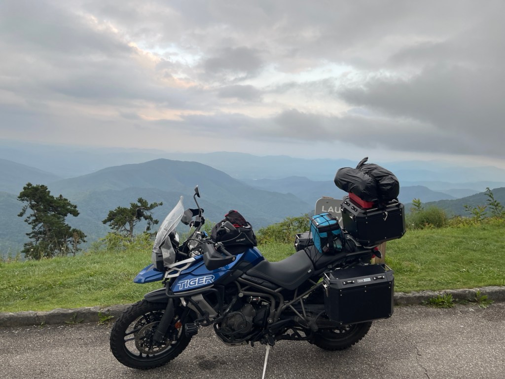 Today the goal was to start making our way home by taking the Blue Ridge Parkway. The Blue Ridge Parkway runs 469 miles through the Appalachian Mountains from Cherokee, North Carolina to Waynesboro, Virginia. It’s a National Parkway that’s also known as “America’s Favorite Drive”.